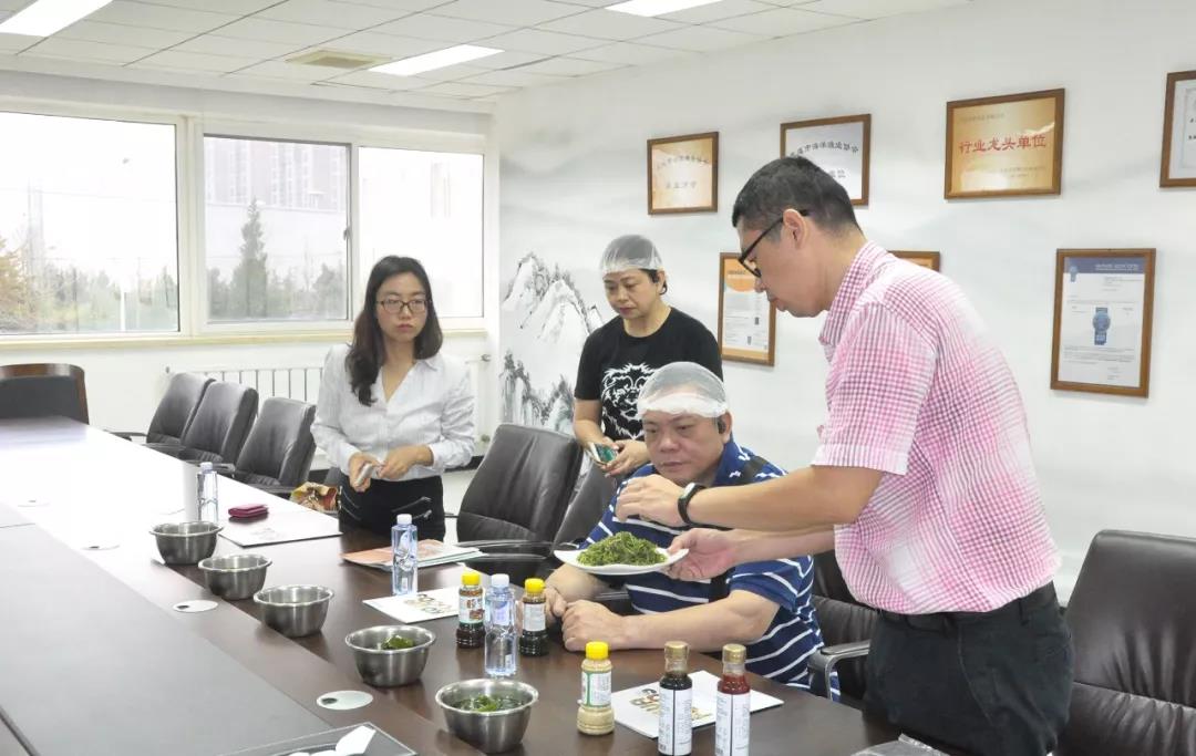 在浩和接待人員的引導(dǎo)下,中大餐飲一行人重點(diǎn)參觀了浩和央廚產(chǎn)業(yè)園的水產(chǎn)線及央廚合成線,并對(duì)車間的格局設(shè)計(jì)、HACCP執(zhí)行在裝修上的要點(diǎn)、機(jī)器設(shè)備、路線規(guī)劃,人工操作等問題展開了深入探討和交流。與此同時(shí),鑒于浩和食品在水產(chǎn)養(yǎng)殖和出口、尤其是海藻類原料方面所具備的優(yōu)勢,原料類產(chǎn)品也是中大餐飲參觀的重點(diǎn)項(xiàng)目之一。