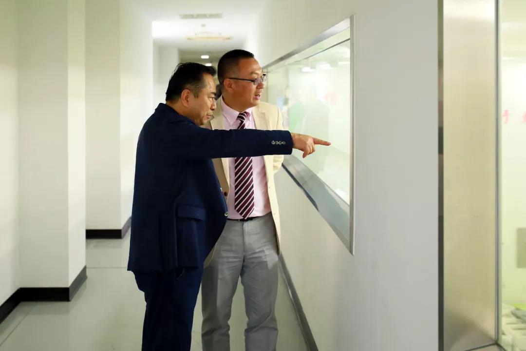 劉雍董事長引導徐富成社長參觀浩和中央廚房